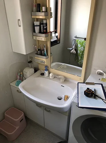 以下は、リフォームによって収納容量の大きい洗面台に交換した事例です。